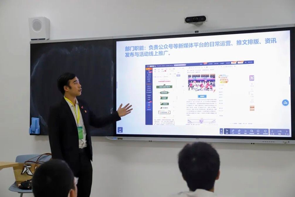 纳新筹备阶段,新媒体中心成员充分把握晚自习黄金时段,深入各新生班级开展宣讲。现场通过播放精心制作的优秀宣传作品、分享成员在团队中的成长与收获,生动直观地介绍了中心旗下各部门的核心职能、工作成果与发展方向。鲜活的案例与真诚的分享引发新生强烈共鸣,现场互动频繁、气氛热烈,纳新咨询群短时间内便迎来满员,充分彰显了新媒体中心的吸引力。
