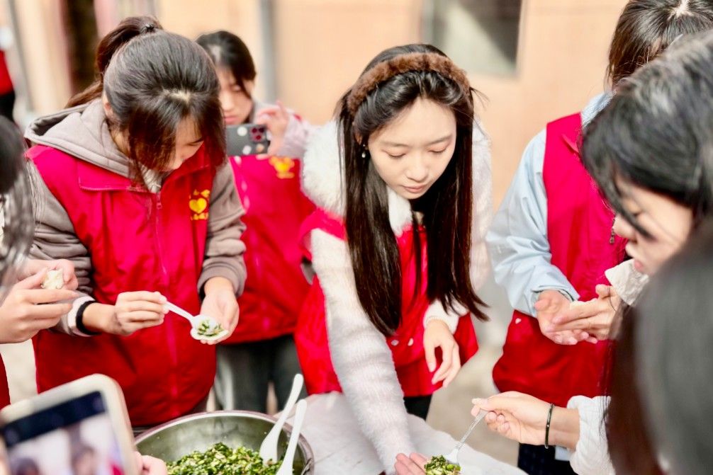 活动伊始,志愿者们怀揣志愿初心,面带真挚笑容踏入敬老院,主动围坐在老人身旁闲话家常。他们耐心倾听生活点滴,轻声回应、关切询问,以专注眼神与贴心互动传递珍视之意,悄然拉近距离、温情相依。随后的文艺表演中,朗诵《时光的对话》,以深情笔触串联岁月;轻唱歌曲《暖暖》,用柔婉旋律传递初心。现场暖意融融,老人们笑意盈盈、不时颔首,满是沁润心田的温馨。表演落幕,志愿者们分工协作择菜、调馅、擀皮、包捏,将初心与关怀裹进饱满饺子。热气腾腾的饺子端上桌,大家细心喂食行动不便的老人,一口口热食暖脾胃,一声声问候润心田,敬老院萦绕着浓浓的烟火气与满溢的暖柔温情。