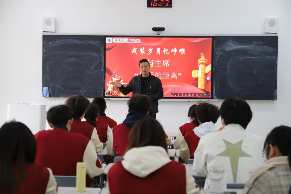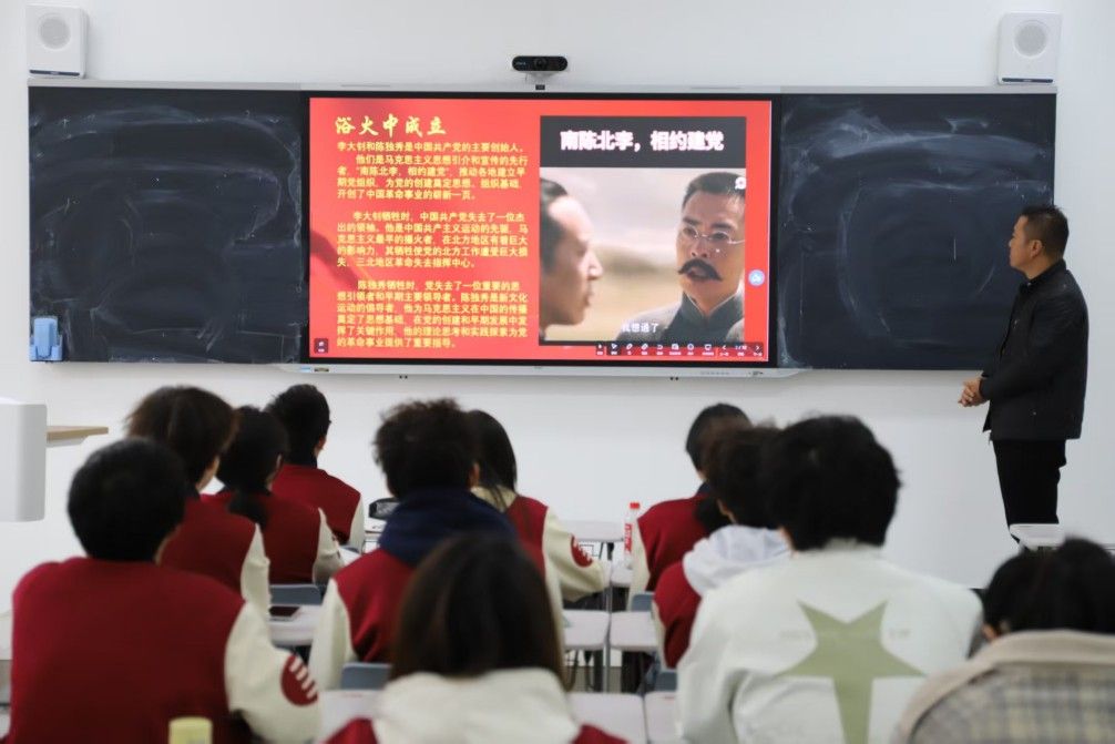 为深化学习实效,本次党课采用“领学+观影”的双轨教学模式。在领学环节中,经济贸易学院辅导员王伟老师以时间为轴,从开天辟地的新民主主义革命时期、改天换地的社会主义革命和建设时期,到翻天覆地的改革开放和社会主义现代化建设新时期,再到惊天动地的中国特色社会主义新时代,系统梳理了中国共产党百年来的光辉历程与伟大成就,唤醒民众的党史情怀,通过视频观看,唤醒先进青年追求真理的激昂岁月,直观感受革命先辈以身许国的爱国情怀与担当精神。