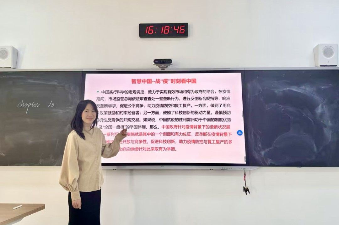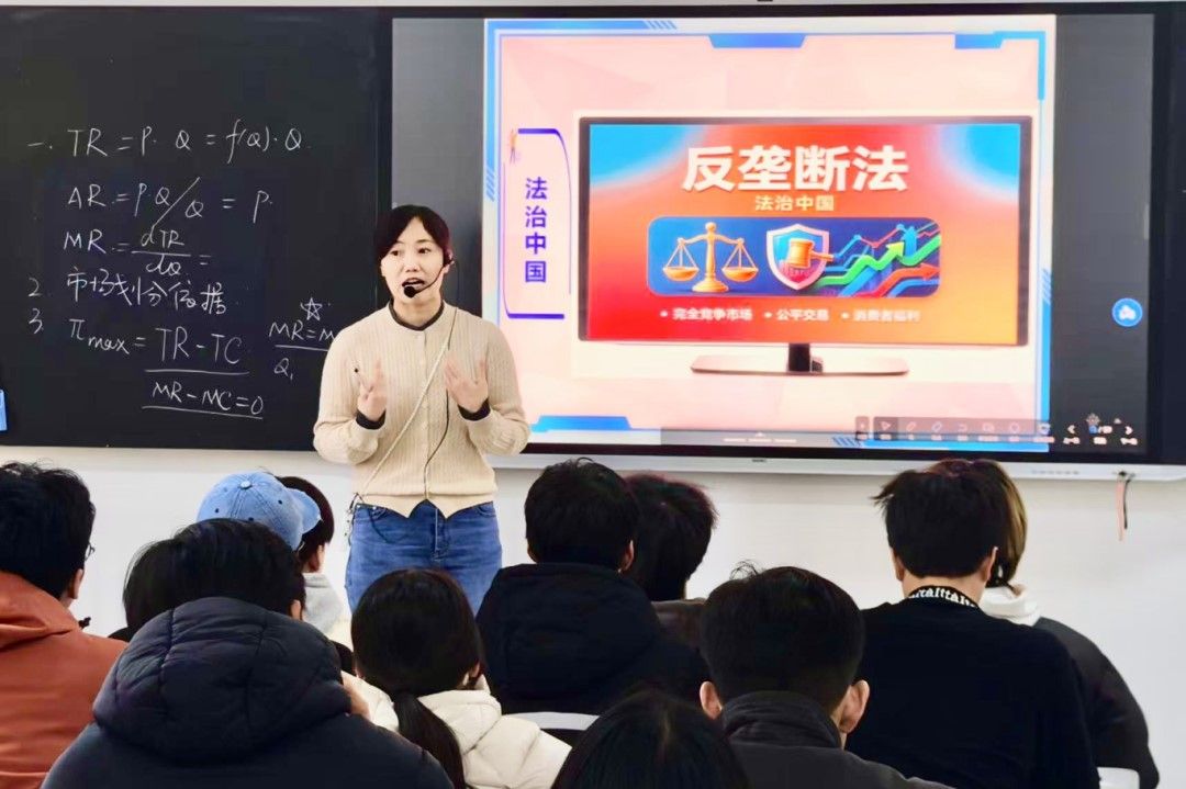 “法治中国”模块,周冰老师以平台经济反垄断案例为切入点,通过剖析垄断行为对市场竞争的损害,引导学生辨别竞争边界,理解《中华人民共和国反垄断法》对维护市场秩序的重要价值,将法治教育自然融入课堂,让知识传授与价值引领有机统一,引导学生辨别垄断与竞争的界限,理解法治教育对保障市场公平、促进中小企业发展的重要价值,将法治教育融入微观经济学教学全过程。