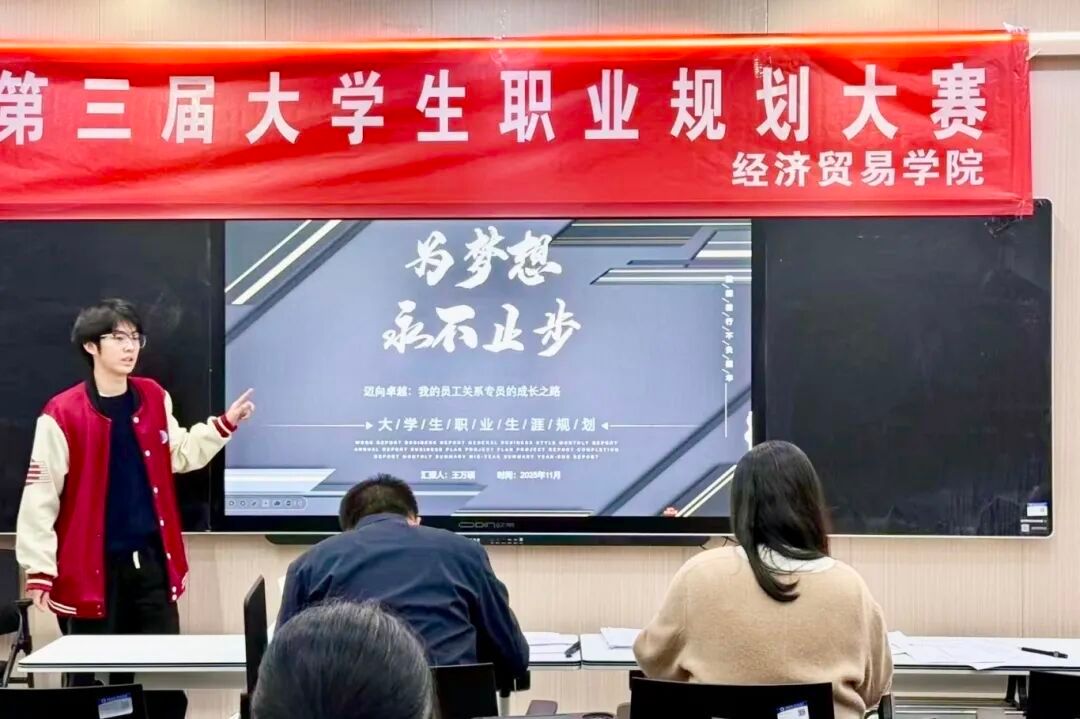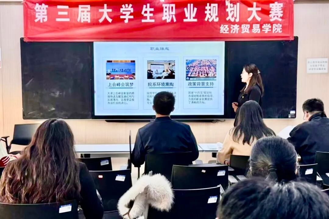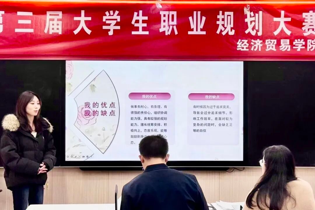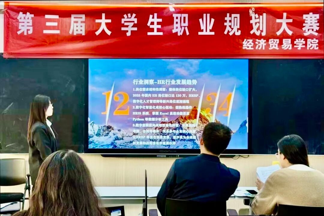 为进一步引导学子树立科学职业规划意识,明晰未来发展方向,切实提升职业竞争力与发展能力,11月20日下午4:20,第三届大学生职业规划大赛经济贸易学院院赛在实验楼302、304教室顺利举行。经过多轮激烈比拼,一批目标清晰、准备充分的优秀选手脱颖而出,成功拿到晋级校赛的“入场券”。