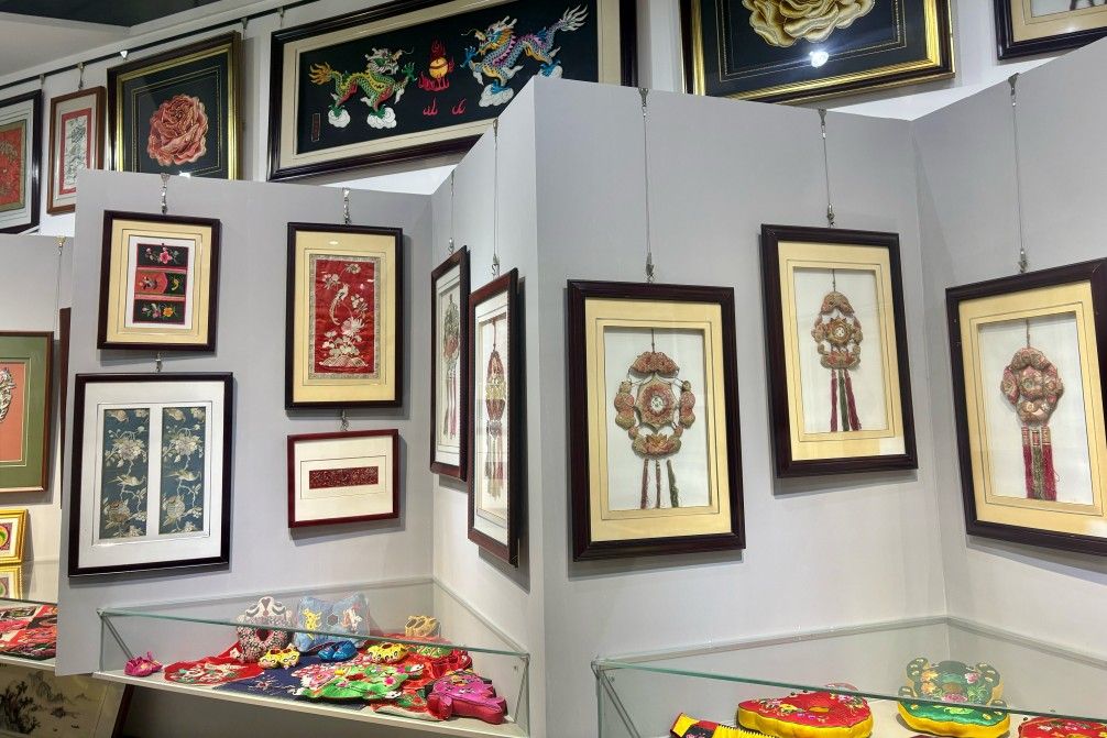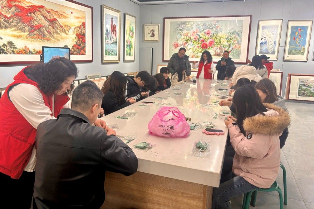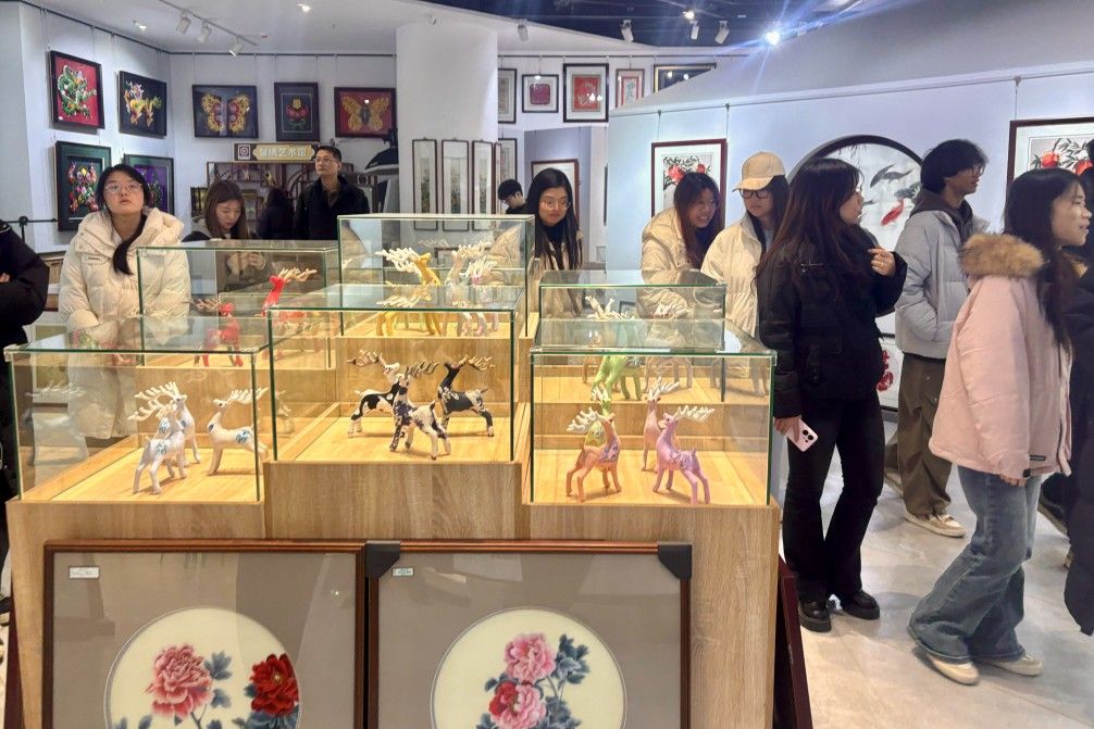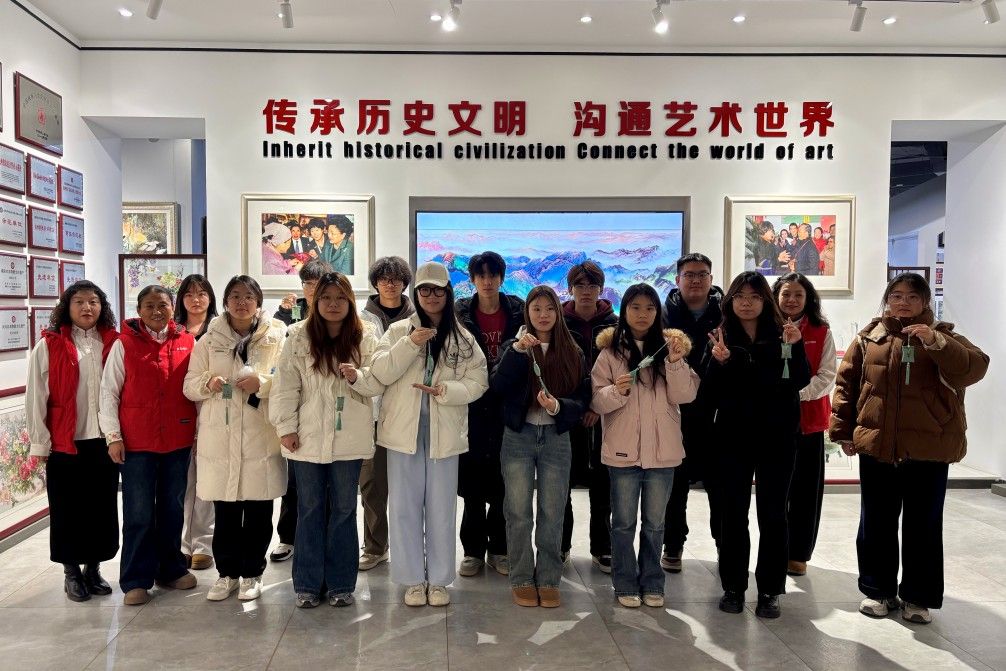 在刺绣非遗展区,精美作品引得同学们驻足赞叹。更难得的是,大家在非遗传承人指导下亲手制作刺绣荷包,在一针一线中感受匠心传承与文化温度。老师补充道:中华优秀传统文化是提升出口商品附加值的重要源泉。将非遗融入跨境贸易,不仅能增强商品竞争力,更是传播中华文化、践行文化自信的生动实践。这同样是国贸学子服务国家开放战略应有的担当。