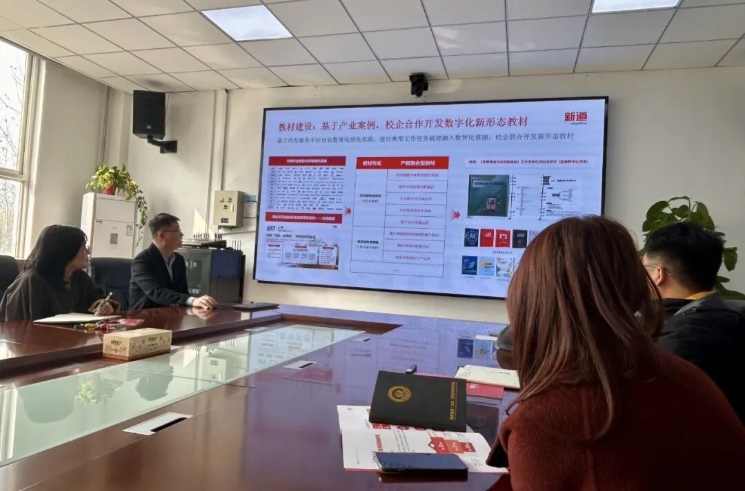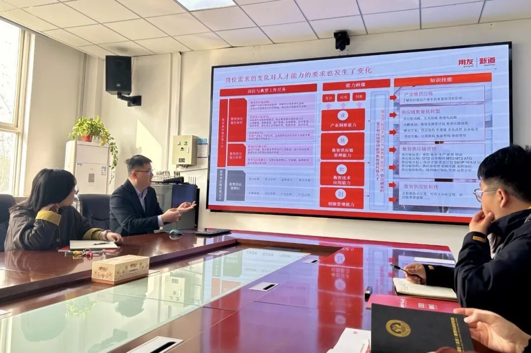 在研讨交流环节,校企双方围绕人才培养目标、课程体系设置、实践教学安排、师资队伍建设等核心议题展开深入探讨。供应链管理专业教师结合教学实践,提出了当前课程设置与企业实际需求脱节、实践教学资源不足、数智化教学内容欠缺等问题;新道科技行业专家结合企业岗位调研数据,针对性地给出了优化建议,建议增加智慧供应链、供应链大数据分析、AI在供应链中的应用等数智化课程模块,引入企业真实项目案例开展沉浸式教学,共建数智化实训平台,实现“教学即生产”的实践育人模式。双方还就校企共建课程、共享实训资源、企业导师进校园、学生实习就业对接等具体合作事宜达成初步共识。