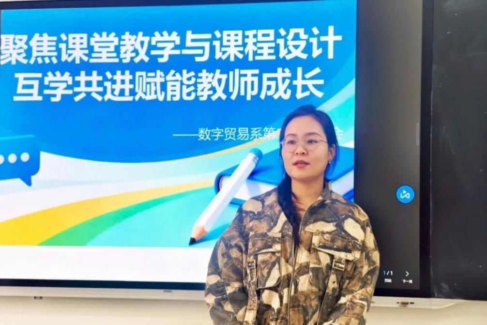 国际经济与贸易专业教师王春舒则聚焦 “数字贸易背景下国贸课程内核重塑” 展开交流。她表示,随着传统国贸岗位向跨境数字运营型转变,课程设计必须紧扣跨境电商实务、国际贸易新规则、智能结算等行业前沿内容。针对数字时代国贸人才的能力需求,王春舒提出数智 + 贸易的课程重构思路,将大数据分析、智能客服系统操作等内容融入课程体系,通过翻转课堂、情境模拟等教学方式,培养学生的跨文化交际能力与数字贸易实操能力。