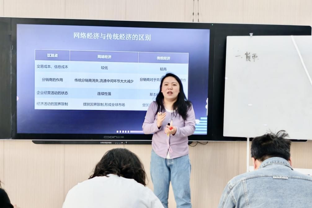 穆清老师带来《网络支付与结算》课程,以“网络经济与传统经济的区别”为核心,通过清晰的对比表格,从交易成本、分销渠道、经营连续性、市场边界等维度,深入浅出地剖析了网络经济的核心特征,帮助学生建立起对数字经济的系统性认知,课堂逻辑严谨、内容扎实,充分展现了专业课程的理论深度。