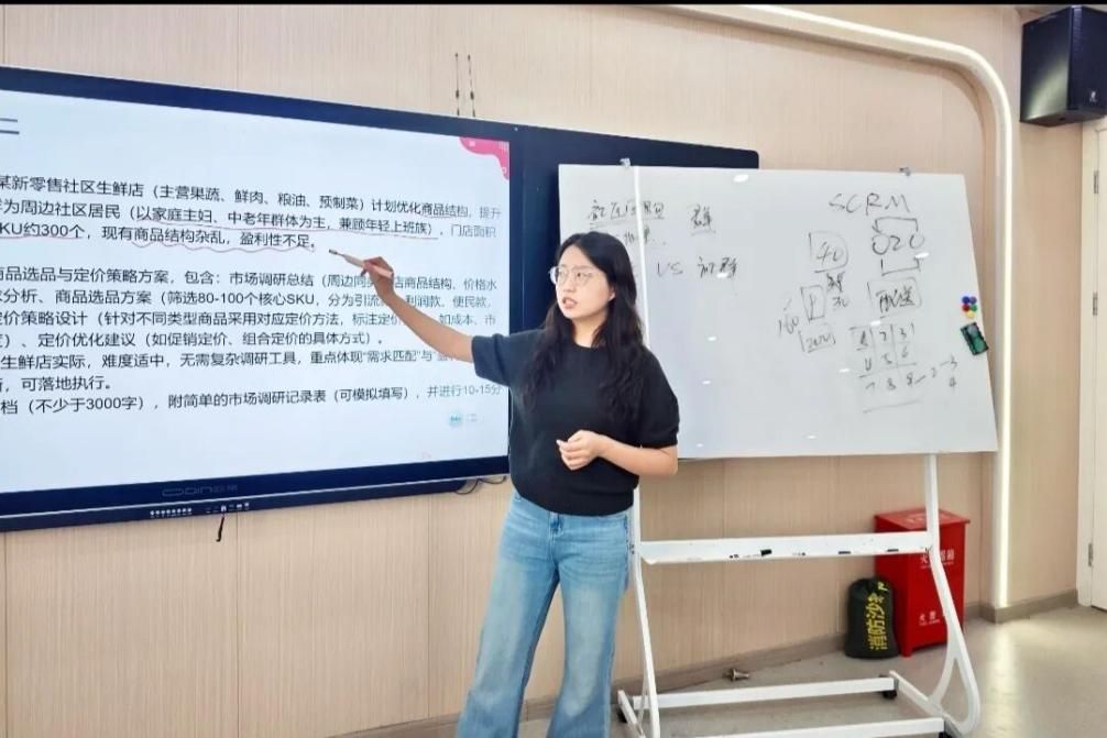 张瑞老师主讲《新零售运营与管理》课程,以社区生鲜店商品结构优化为真实案例,围绕市场调研、SKU筛选、定价策略等核心环节,设计了可落地、可实操的教学方案,将新零售的前沿理念与实体门店运营场景紧密结合,让学生在真实商业案例中掌握运营技能,课堂实用性与指导性突出。