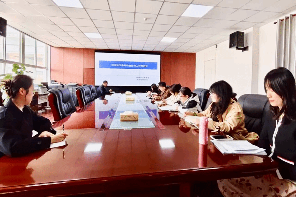 为切实保障2026届本科毕业论文(设计)质量,严格把控论文撰写全流程,2026年3月24日,我院管理系在第一会议室召开毕业论文中期检查指导工作推进会。会议由系主任潘晓光老师主持,管理系全体教师共同参与。