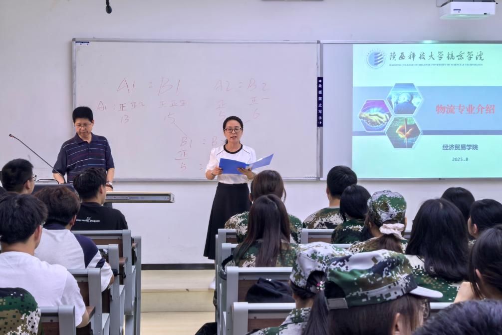 近日,经济贸易学院物流系分两场顺利举办 2025 级新生专业介绍会,旨在帮助新生快速了解专业、明确学习方向。物流系主任蔡晓华老师担任主持人,庄学思教授为主讲人,物流系全体教师全程参与。