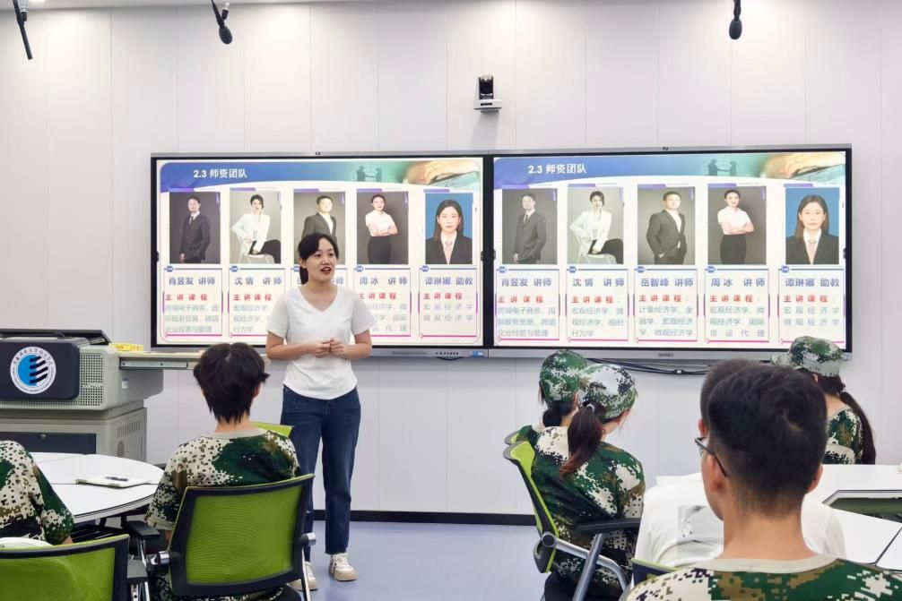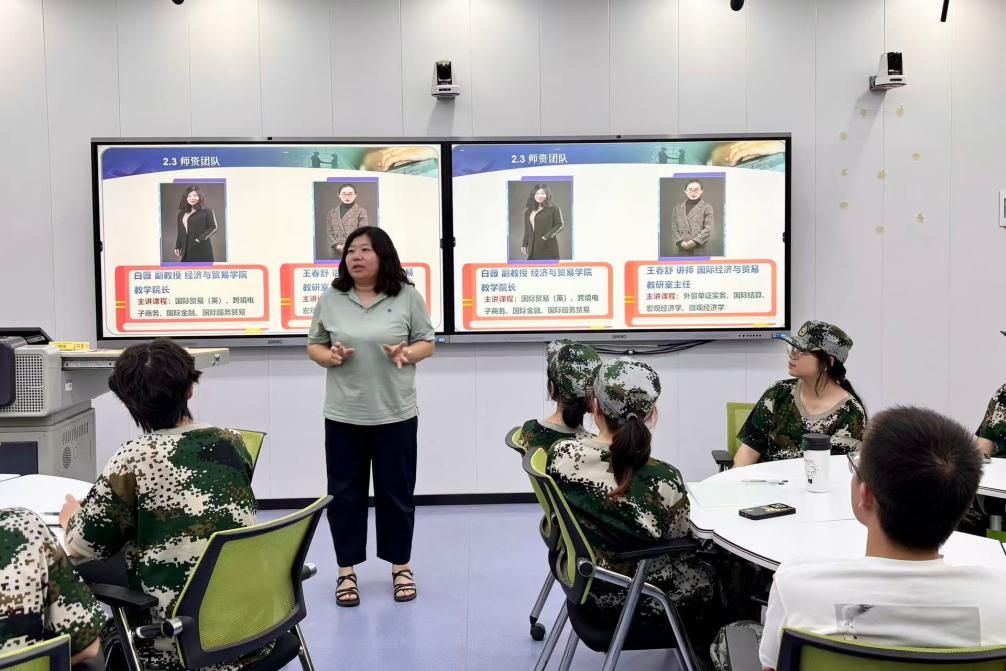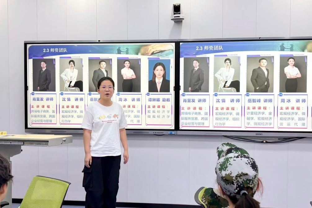 在教师风采展示环节,各位专业课教师依次登场。他们不仅分享了自己的学术研究方向和教学理念,更结合亲身经历畅谈对国际贸易专业的理解。“国贸是一门需要‘走出去’的学科,既要懂理论,更要会实操”“在数字化时代,跨境电商为国贸注入了新活力,同学们要紧跟时代步伐”…… 老师们的真诚分享让新生们对专业学习有了更具体的规划。