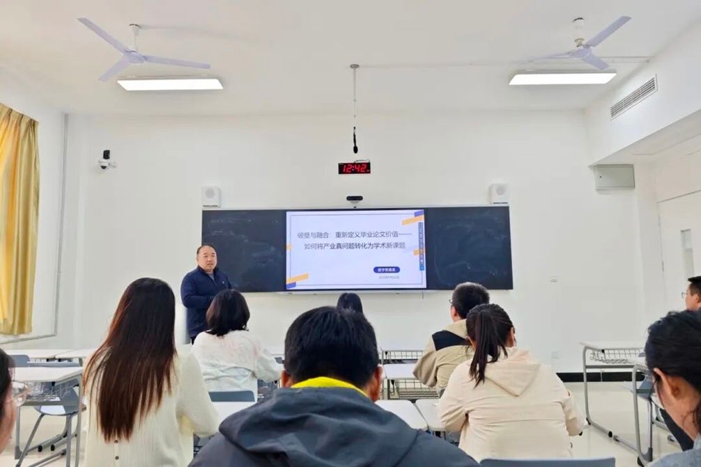 会议伊始,杨哲主任点明本次教研会的核心意义。他指出,当前部分毕业论文存在闭门造车现象,学术选题与产业实际需求脱节,导致论文价值难以在实践场景中落地。所谓破壁,就是要打破教师教学、学生研究与产业实践的信息壁垒;所谓融合,就是要让学术逻辑与产业逻辑同频共振,让毕业论文成为连接课堂与职场、理论与实践的桥梁。杨哲主任的观点为整场会议奠定了研讨基调。