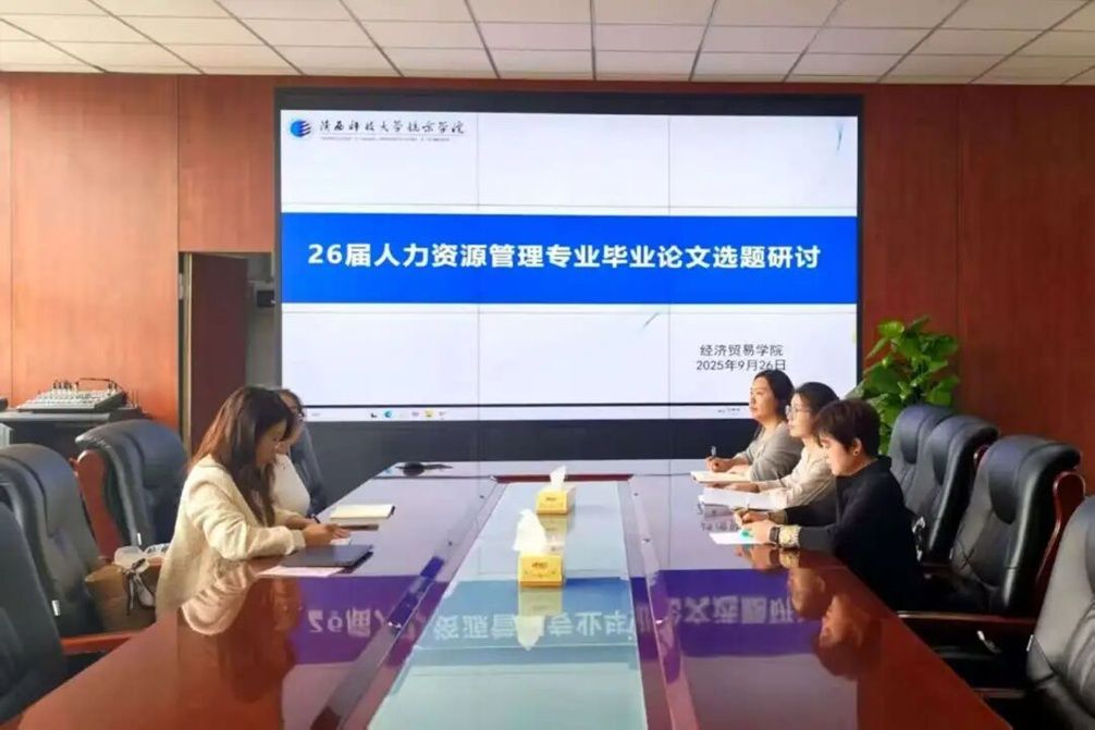 为帮助26届人力资源管理专业学生精准把握毕业论文选题方向,提升论文研究质量与学术水平,搭建师生学术交流与指导平台,2025年9月26日,经济贸易学院人力资源管理专业全体专任教师于教学楼第一会议室进行26届人力资源管理专业毕业论文选题研讨。