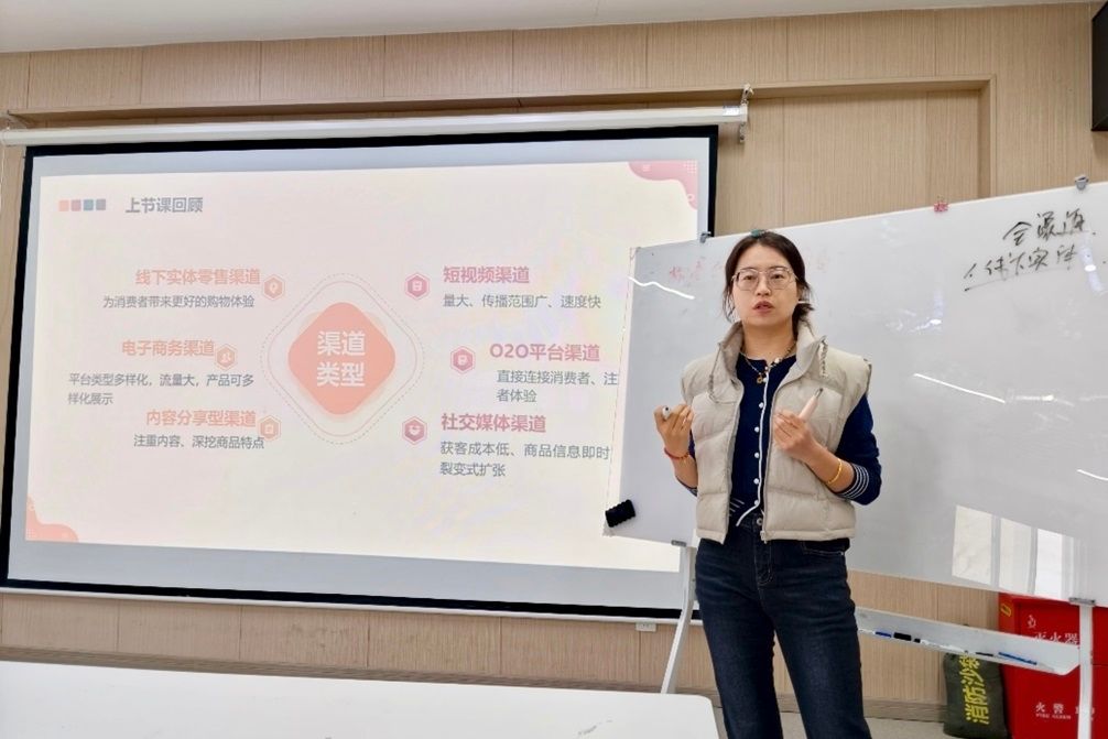 在三位老师分享后,冯琳老师进行总结点评。冯老师指出,三位老师的教学设计均紧密贴合电商行业实际与学生学情,呈现两大亮点:一是教学目标精准,均实现理论层面与实践层面的双维度贯穿,符合专业人才培养需求;二是教学逻辑清晰,均遵循学生由浅入深的认知规律,助力知识高效传递。同时,冯老师也提出优化建议,可增加课堂互动环节,如针对案例设置小组讨论任务,进一步提升学生的参与度与实践思考能力。