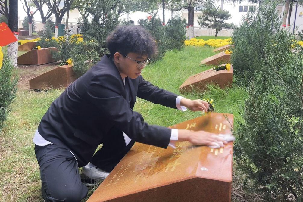 清晨的烈士陵园庄严肃穆,全体人员在革命烈士纪念碑前整齐列队。团日活动在雄壮的国歌声中拉开序幕,激昂旋律回荡天际,传递着对英烈的深切缅怀。随后,队员们依次敬献黄菊。朵朵菊花在晨光中静默绽放,寄托着后人的哀思。最后,志愿者们认真擦拭纪念碑基座,以实际行动表达对英烈的尊崇,忙碌的身影成为陵园中一道动人的风景。
