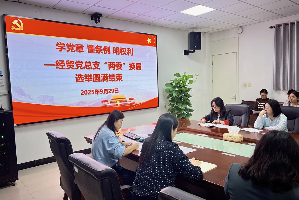 为深入学习贯彻党章党规,严格落实《中国共产党基层组织选举工作条例》相关要求,充分保障党员民主权利,2025年9月29日,经济贸易学院党总支于第二会议室召开镐京学院新一届委员会和纪律检查委员会(以下简称“两委”)换届选举大会。会议由党总支副书记常青主持,书记南琳芝,教工支部书记张红珍、学生支部书记曾庆竹,及全体教工党员参加。