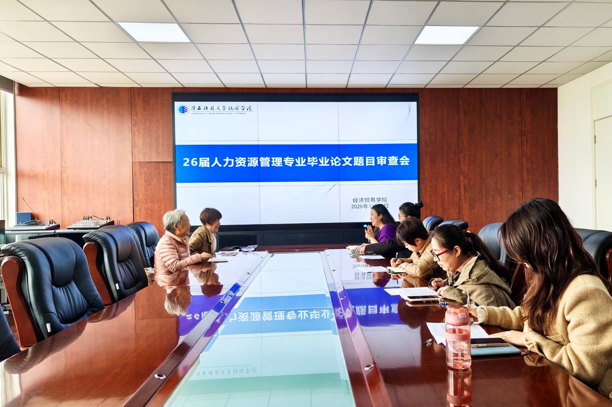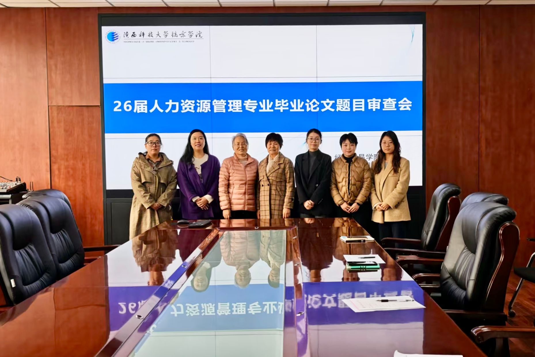 2025年11月5日,陕西科技大学镐京学院人力资源管理专业教研室在第一会议室成功召开了“2026届人力资源管理专业毕业论文题目审查会”。此次会议旨在进一步提升本科毕业论文质量,强化论文选题与研究的规范性、时代性及实用性,为2026届人力资源管理专业学生的毕业论文工作明确方向。会议由杨琪老师主持,参会人员包括专业带头人夏彩云教授、王珍副教授等人力资源管理专业教研室教师。