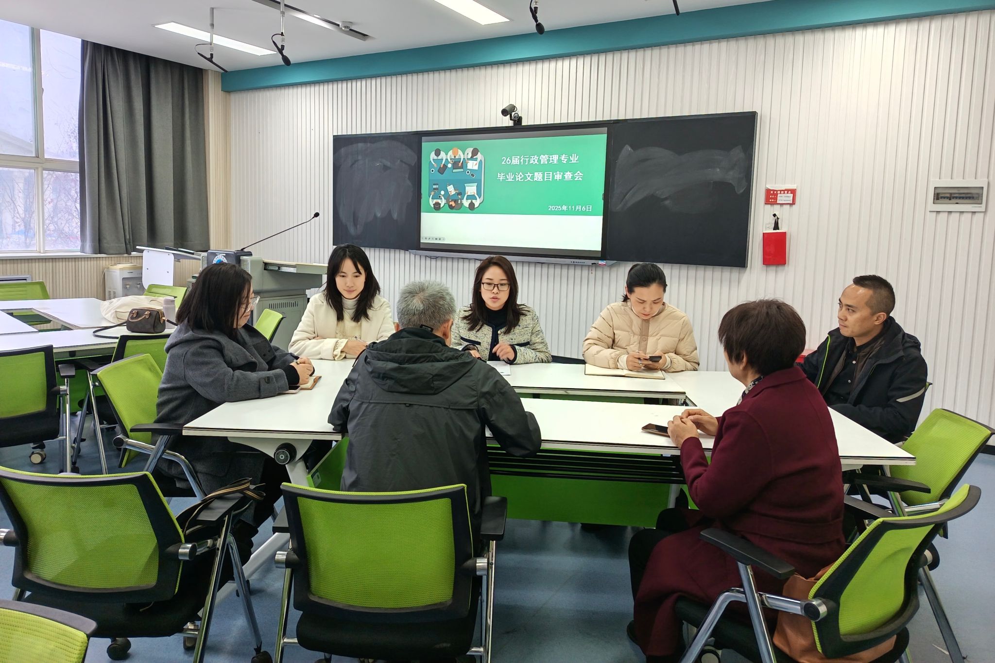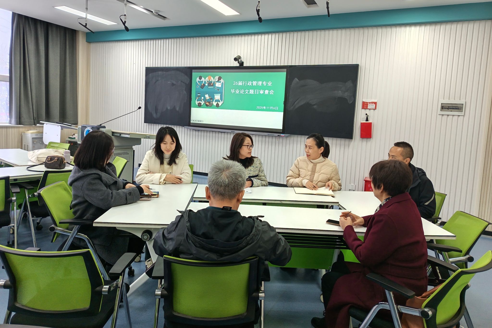 为严格把控本科毕业论文质量,夯实人才培养的最后关键环节,2025年11月6日,经济贸易学院行政管理专业组织召开了26届本科毕业论文题目审查会。会议由张红珍老师主持,学科带头人王胜利教授、学科组专家夏彩云教授及行政管理专业教师共同参与。