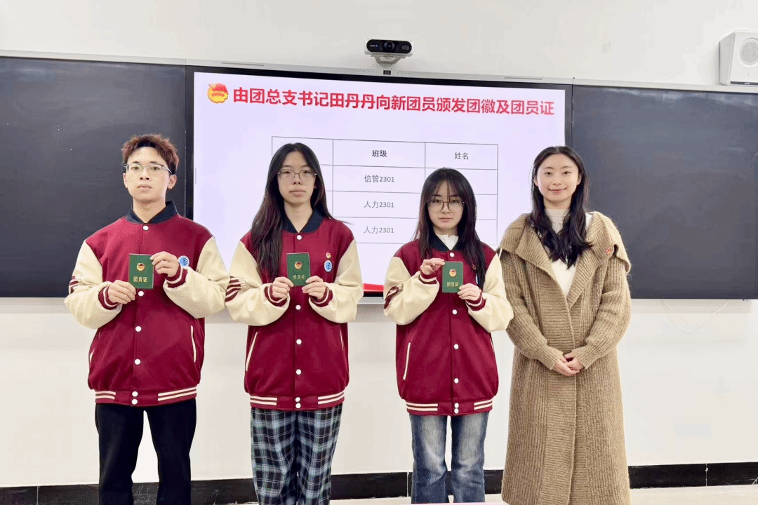 为进一步夯实共青团组织根基,增强新团员的光荣感与使命感,引导青年学子锚定理想信念、传承红色基因,2025年12月1日,经济贸易学院团总支于教学楼318教室隆重举办2025-2026学年第一学期新团员入团仪式。新团员们怀揣热忱齐聚一堂,在庄重的仪式中完成从青年到共青团员的身份蜕变,开启青春奋斗的崭新征程。