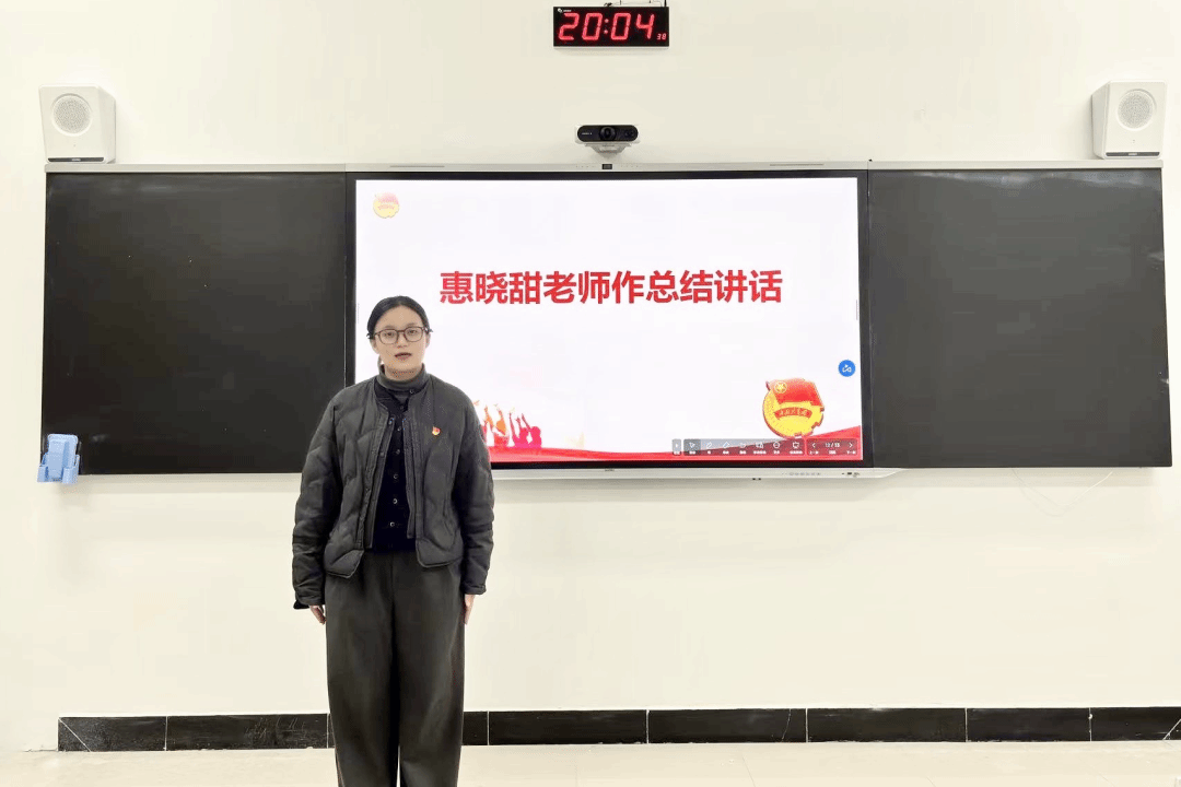 活动最后,全体人员齐唱团歌,经济贸易学院惠晓甜老师向新团员们致以祝贺并作总结讲话。她寄语全体新团员,要牢记入团誓词,坚定理想信念,树立正确的世界观、人生观和价值观;要勤勉求学、笃行不怠,主动参与社会实践,勇于担当时代责任,在实践中绽放人生价值。