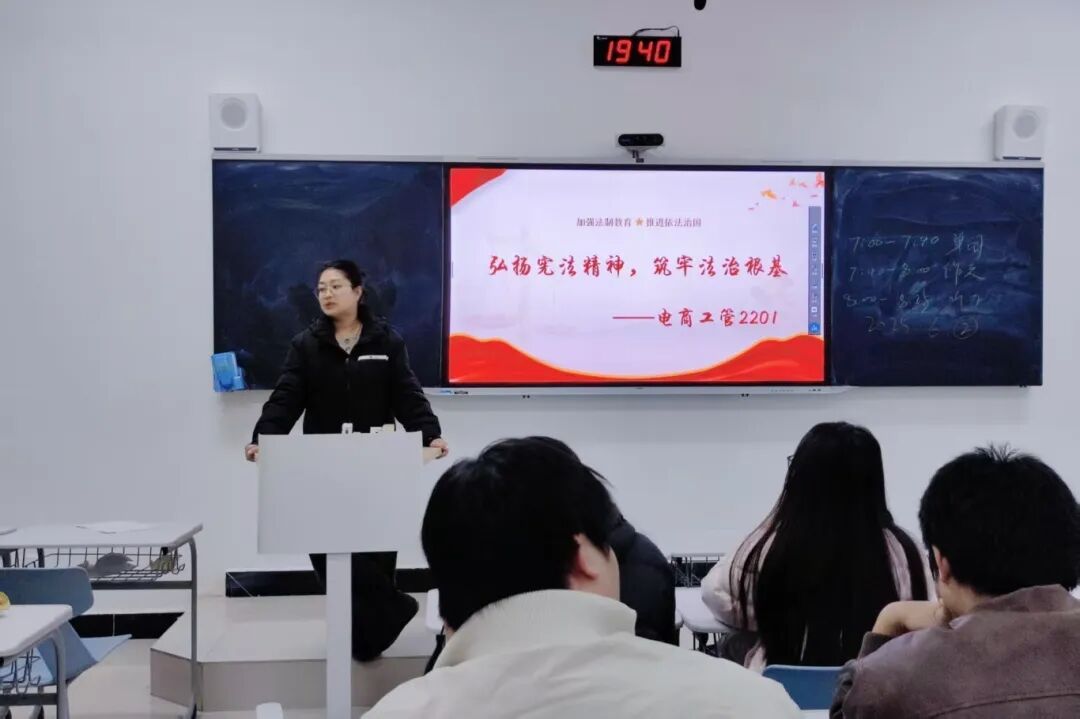 为强化学生法治意识落实宪法宣传教育要求,2025年12月7日,经济贸易学院于各班级开展关于宪法学习主题班会,此次班会由各班辅导员主持,全体同学共同参与。
