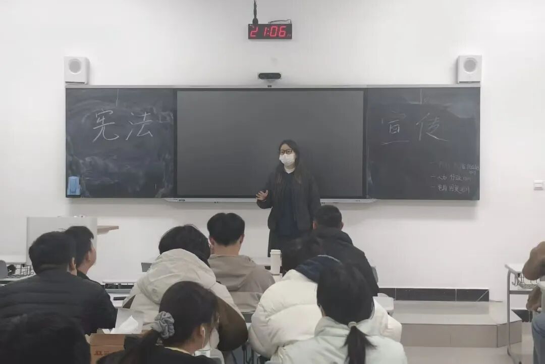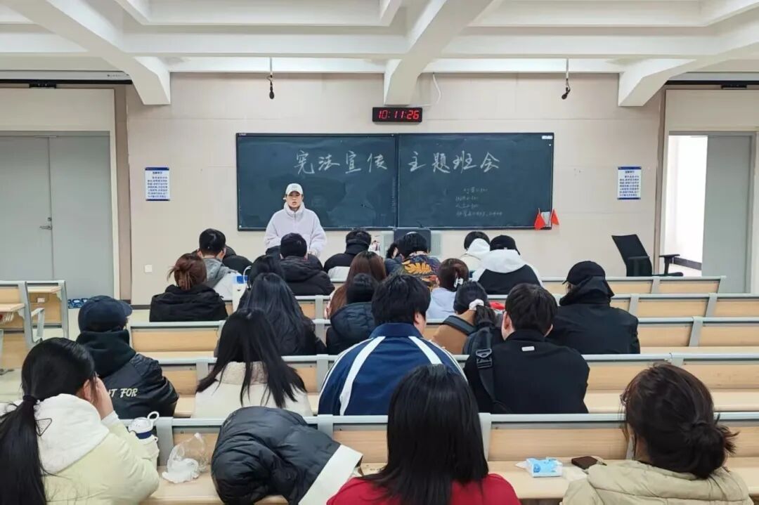 班会围绕“宪法宣传与学习”核心议题展开。辅导员以“生活中的宪法案例”为切入点,结合校园里常见的权益保障、纪律规范等场景,通俗解读宪法中与大学生息息相关的条款,带领同学们集体学习宪法核心精神,引导大家将法治意识融入日常学习生活,做到知宪、懂宪、守宪。其次,以宪法学习网站为载体,希望同学们多加观看宪法专题视频,重点学习宪法中公民的基本义务等核心内容,引导大家深入理解宪法与个体的关联,将知宪、懂宪的意识融入日常学习生活。